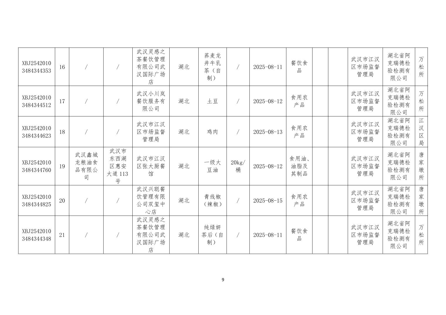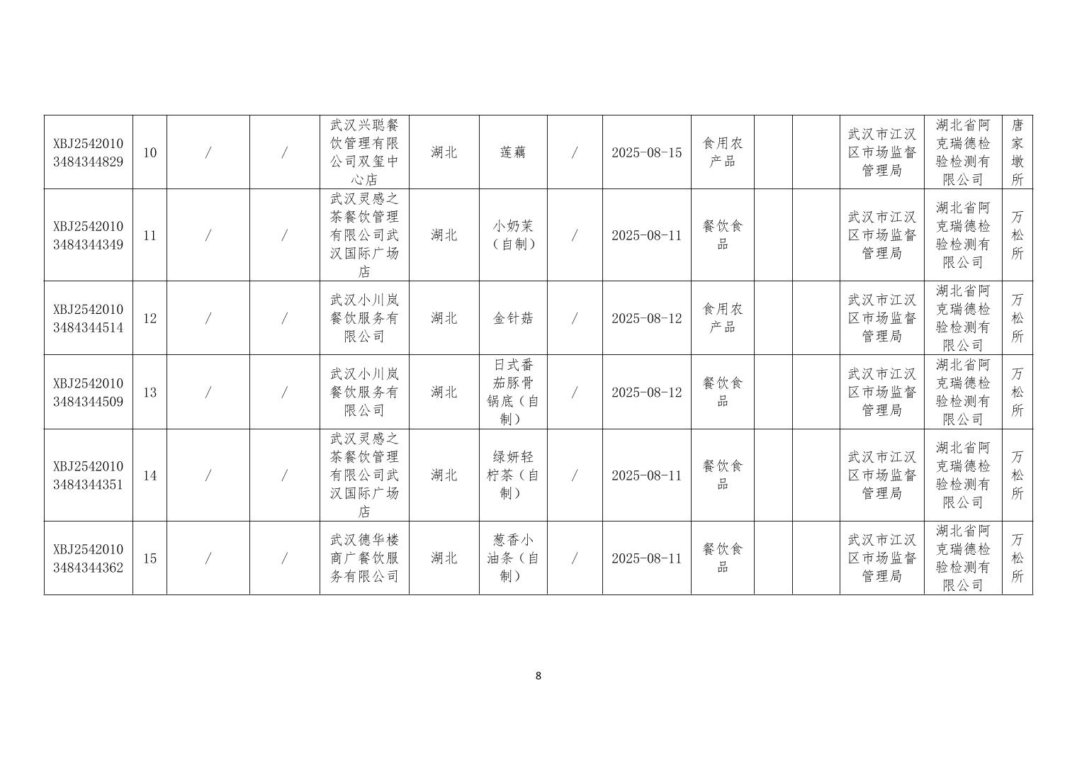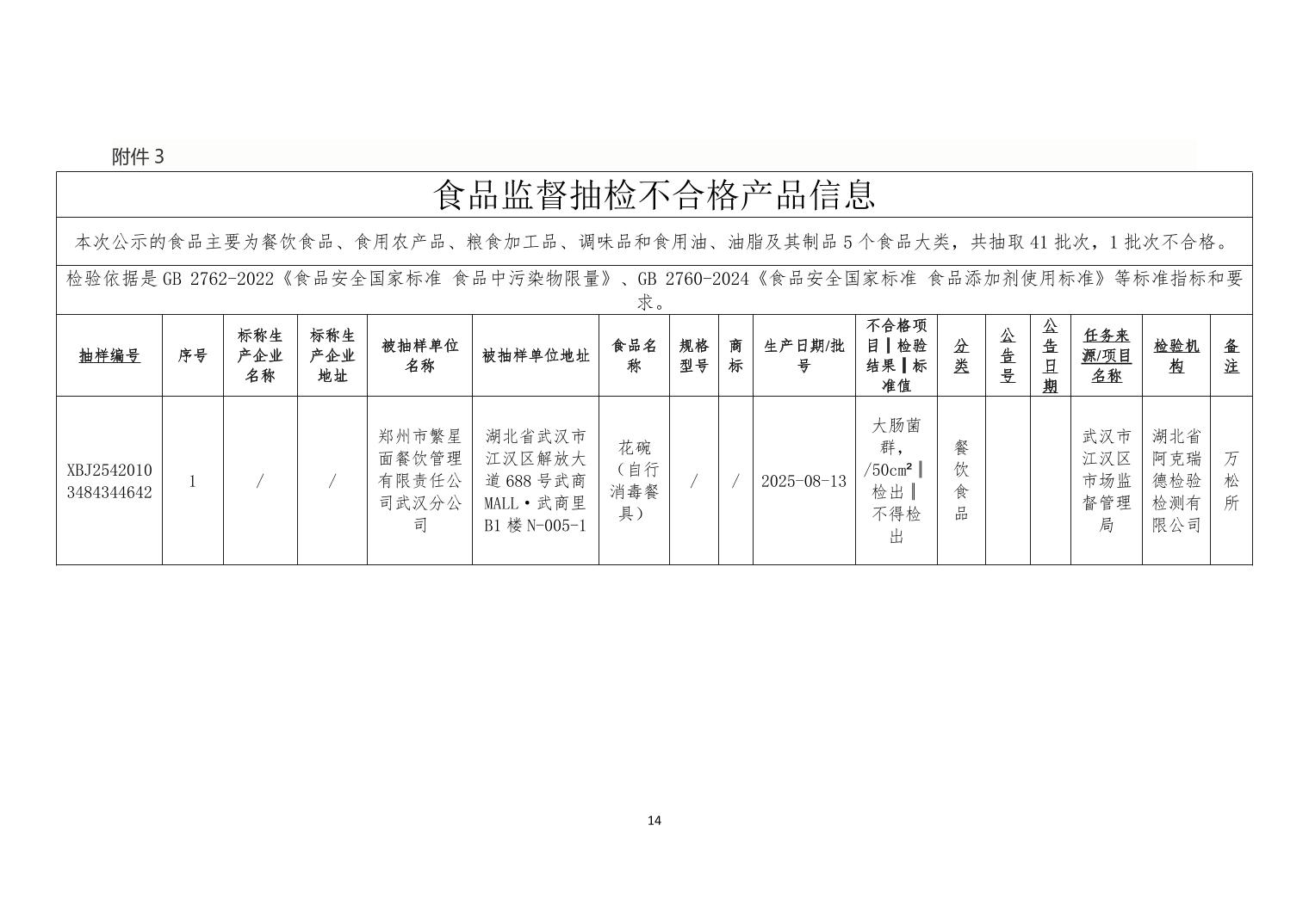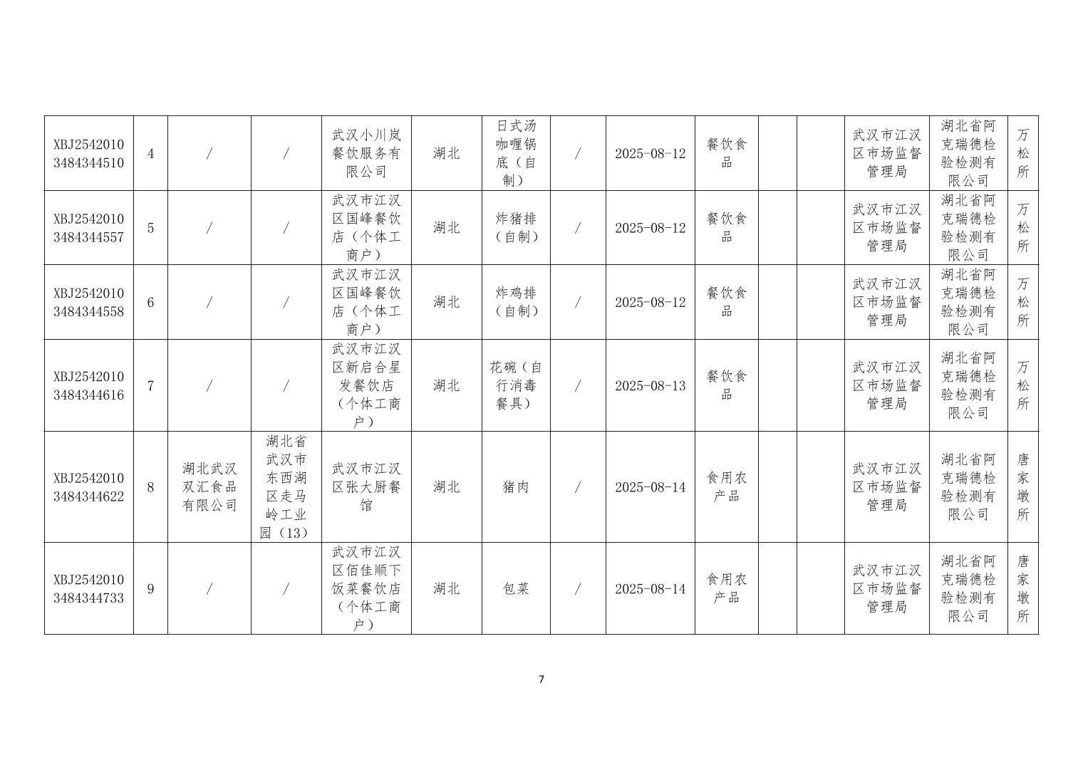标 题 | 江汉区市场监督管理局食品安全监督抽检信息公告(2025年第四十七期) |