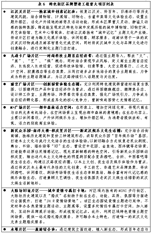 3、聚焦多层级商业街区建设,推进文商旅科融合发展。顺应消费升级需求,以武广商圈、中山大道、江汉路步行街、沿江历史风貌商务区为引领,加快推进雪松路、花园道等区域特色街区打造工作,引进国内外知名品牌“首店”、旗舰店,带动旅游休闲时尚文化产业发展。推进“武汉购物”品牌建设。