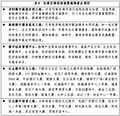——提升楼宇管理和运营水平。盘活楼宇资源拓展空间,充分释放楼宇潜力,让总部企业进楼宇、优质服务进楼宇,促进楼宇经济与总部经济融合发展,打造“立起来的总部经济集聚区”。以楼宇经济信息化建设为抓手,搭建全区楼宇经济信息化系统,涵盖产业分布、企业走访、楼管助手、企业查询、经济指标等功能,可实时掌握全区商务楼宇基本情况和经济指标数据,打破楼宇静态运营弊端,形成畅通、高效、互动的现代化数字服务体系。对老旧楼宇开展提质升级工程,对功能落后的楼宇着力实施硬件设施改造,提高楼宇运营管理水平,导入优质总部企业,大力提升楼宇经济效益,实现旧楼换新机。鼓励新建楼宇开发商和运营商提高楼宇自持比例,引导投资建设楼宇配套服务专用设施,如员工餐厅、一站式服务中心、会议及商务活动中心等,开展专业化、个性化增值服务。倡导楼宇设施与空间的复合化利用模式,增加快餐店、咖啡厅、健身房等商业服务设施配置,通过提高楼宇商业环境品质,构建楼宇经济生态圈,打造集商务办公、休闲娱乐为一体的区域活力中心。